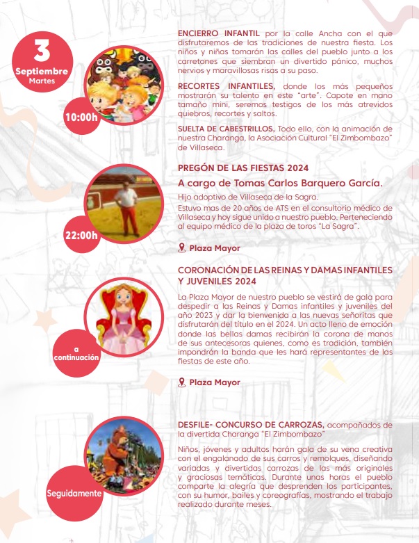 ENCIERRO INFANTIL por la calle Ancha con el que disfrutaremos de las tradiciones de nuestra fiesta. Los niños y niñas tomarán las calles del pueblo junto a los carretones que siembran un divertido pánico, muchos nervios y maravillosas risas a su paso.