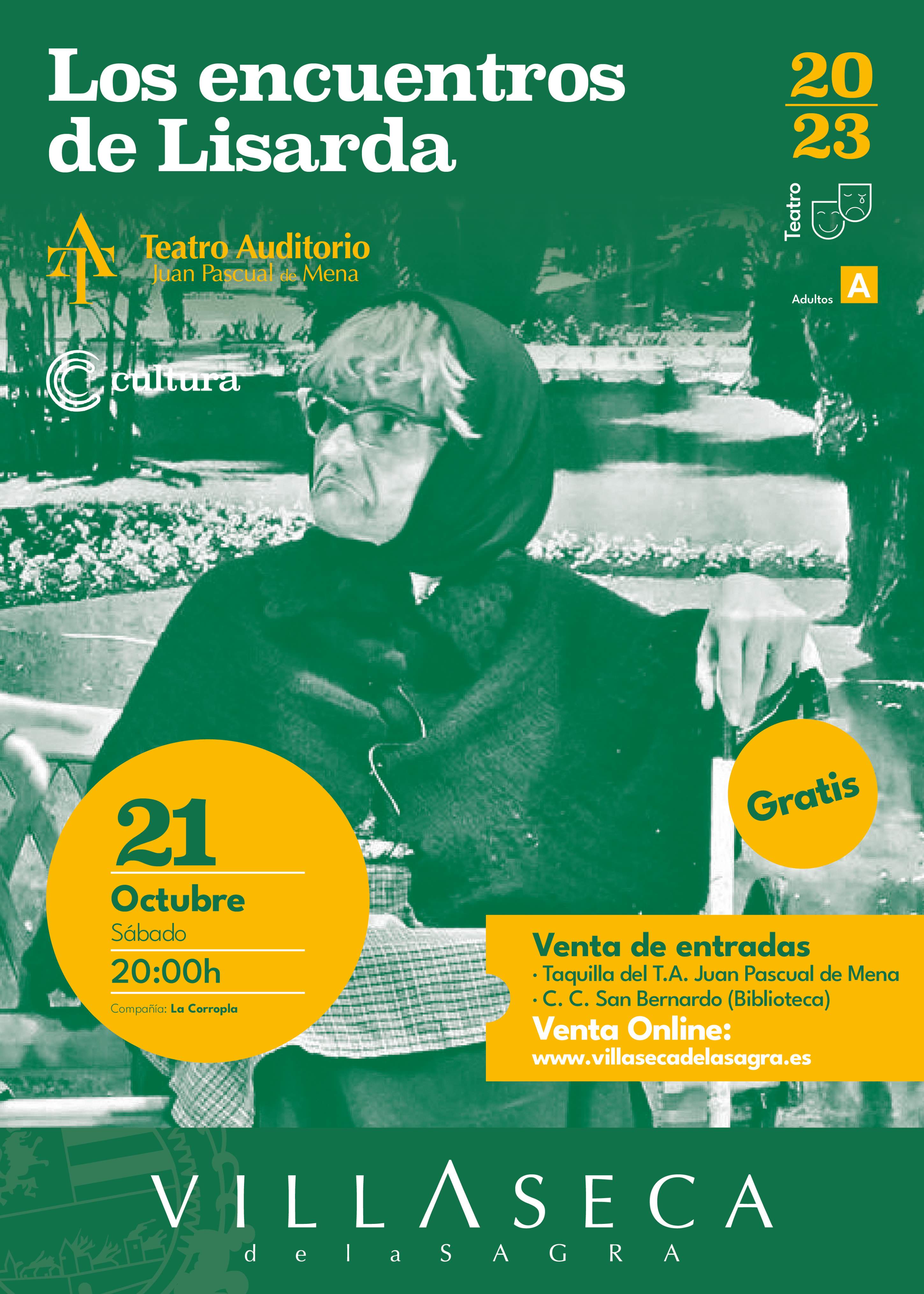 Los chascarrillos y ocurrencias de Lisarda unidos a los malentendidos propiciados por el lenguaje y las diferencias culturales con los otros personajes garantizan más de una hora de carcajadas permanentes. Dos sainetes de José Cedena con Lisarda de protagonista: El dúo Cantinflas y Lisarda y el “escocío”. Dos encuentros en un parque de ese personaje tan carismático y entrañable, como es esta viejita traviesa, con otros dos personajes sumamente peculiares: Gordon, un escocés de pura cepa y Pancho, un mejicano muy…especial.