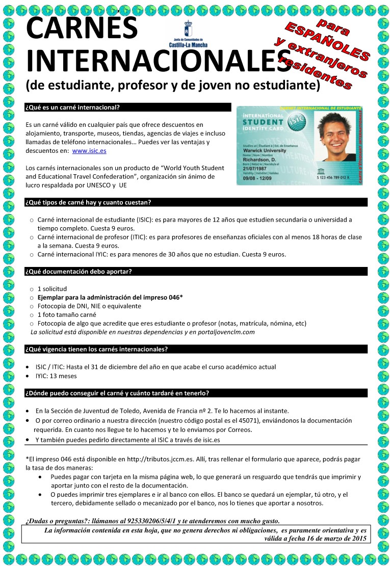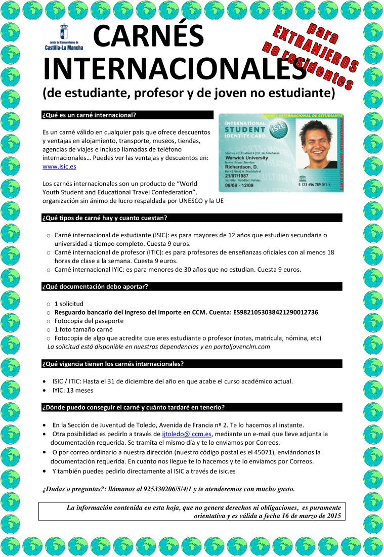 Carné Internacional para Españoles y extranjeros residentes