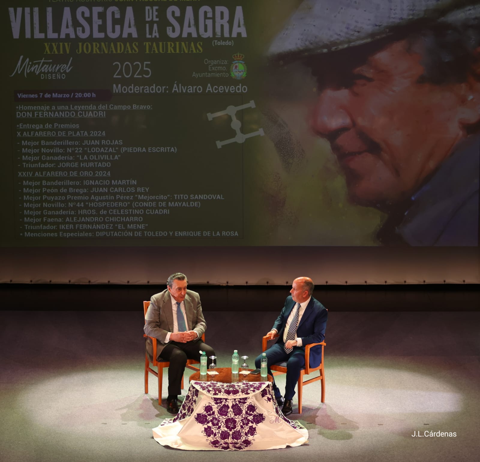 Villaseca de la Sagra puso el broche de oro a sus XXIV Jornadas Taurinas con un sentido homenaje a una leyenda del campo bravo: Don Fernando Cuadri. El ganadero onubense fue el protagonista de una charla moderada por el periodista taurino Álvaro Acevedo, en la que repasó su trayectoria, sus vivencias y su filosofía como criador de toros bravos, dejando a los asistentes con un testimonio inolvidable.