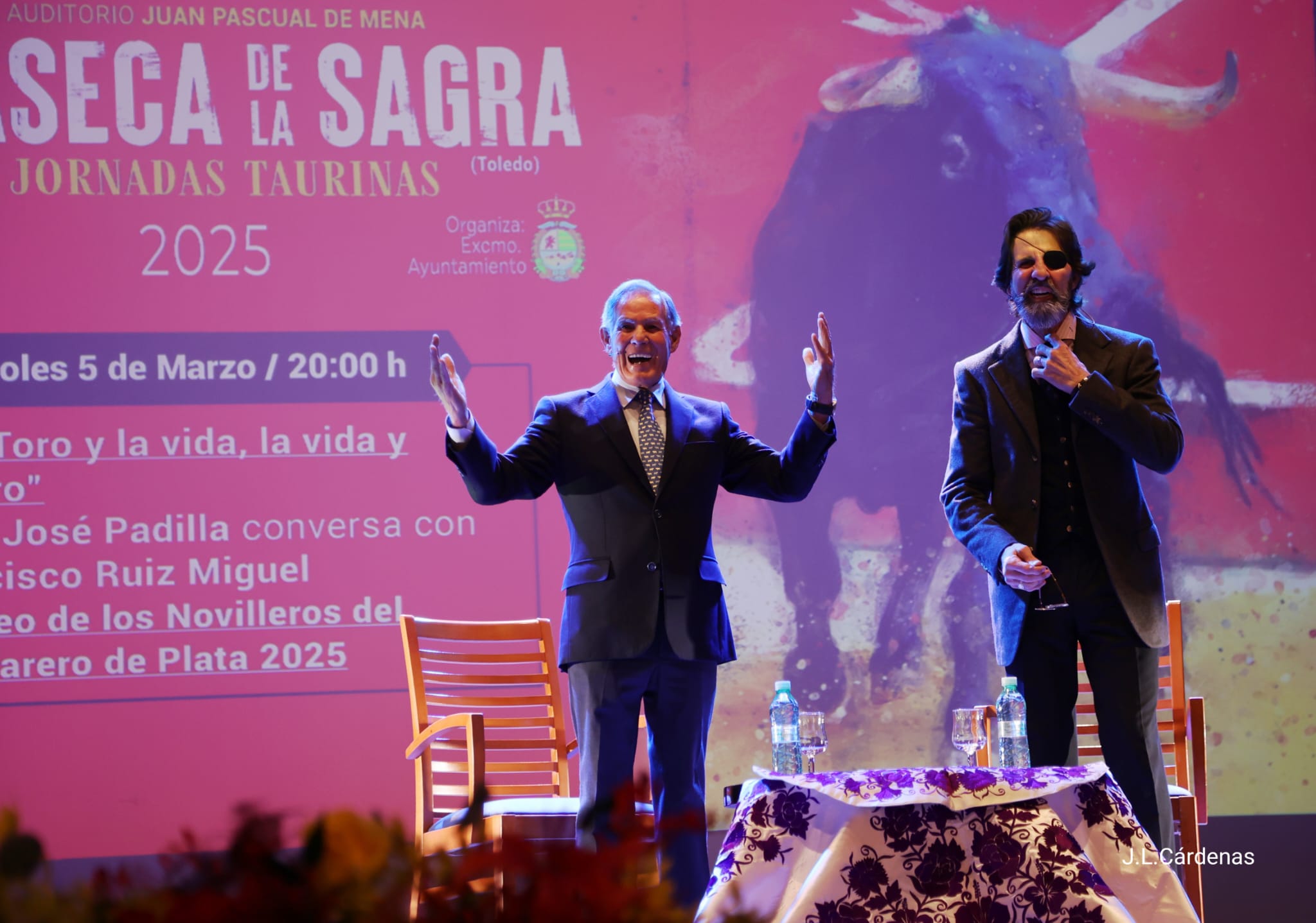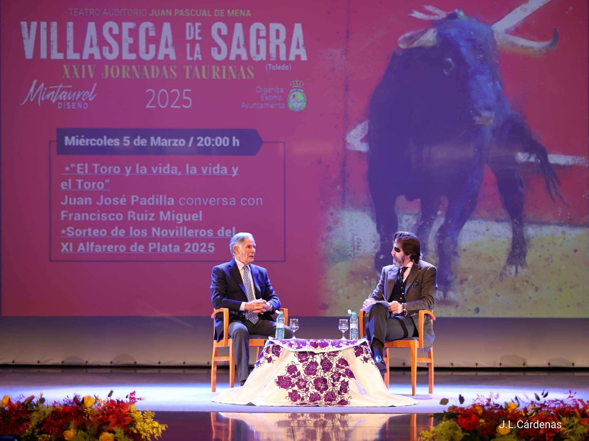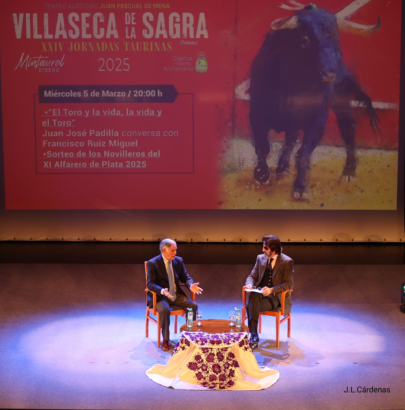 Villaseca de la Sagra vivió ayer una tarde de gran ambiente y afición en la tercera jornada de sus XXIV Jornadas Taurinas. El Teatro Auditorio Juan Pascual de Mena registró un lleno casi absoluto para recibir a dos leyendas del toreo: Juan José Padilla y Francisco Ruiz Miguel, quienes ofrecieron un interesante y emotivo coloquio que mantuvo a los asistentes entregados en todo momento.
