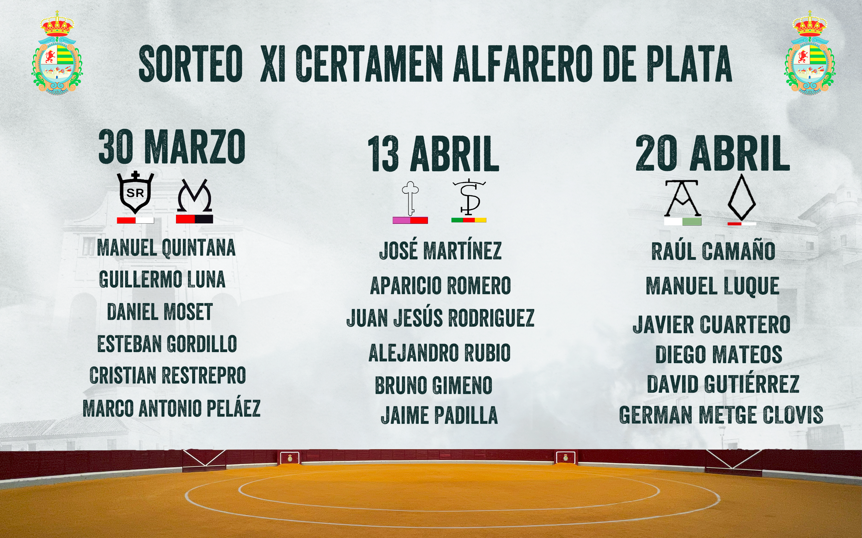 *German Metge Clovis, quedo encuadrado en el día 13 de abril tras el sorteo efectuado, pero al tener un compromiso anteriormente adquirido, cambia de día con Jaime padilla, que le había correspondido el día 20 Abril