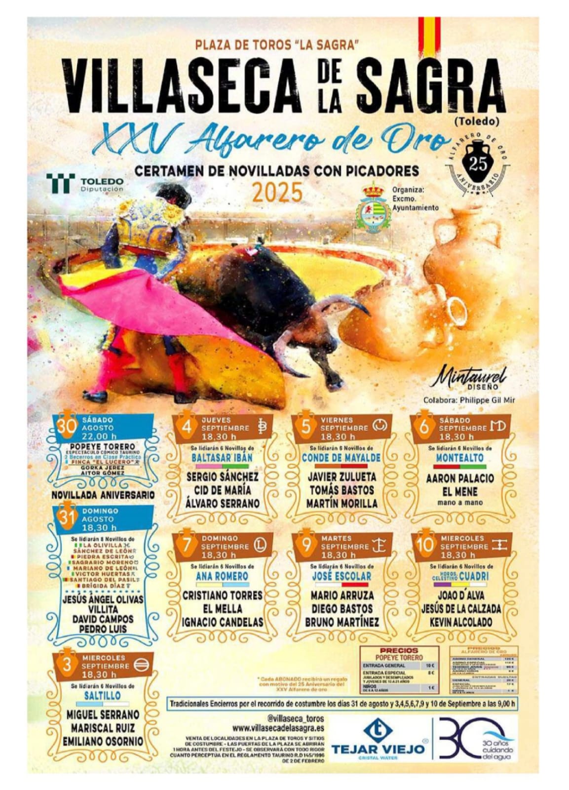 El Ayuntamiento de Villaseca de la Sagra ha presentado oficialmente el calendario, precios y modalidades para la adquisición de abonos y entradas sueltas del XXV Alfarero de Oro, un certamen que alcanza este año sus 25 ediciones consolidándose como uno de los pilares fundamentales en la defensa y promoción de la tauromaquia.