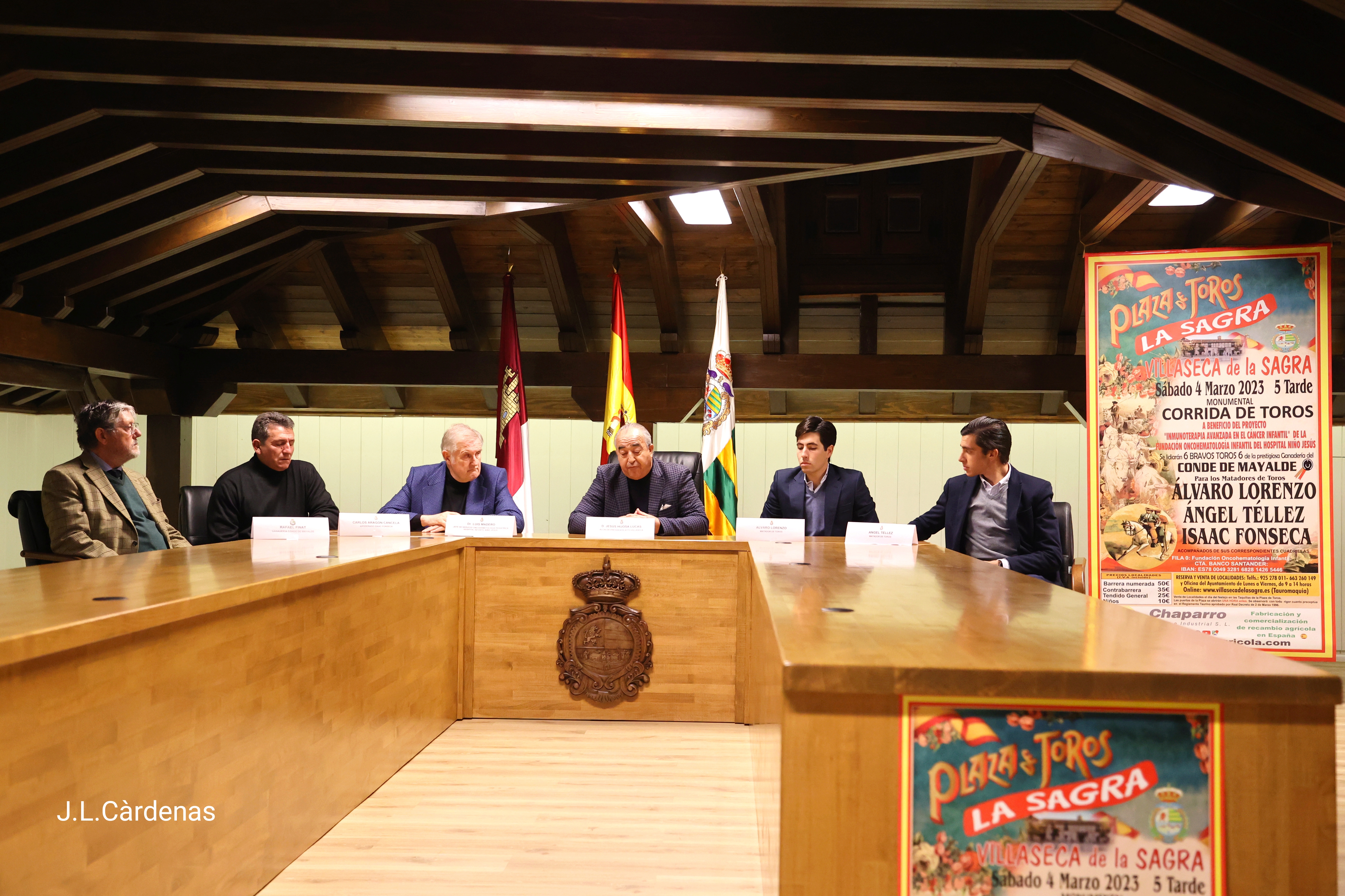 El acto, celebrado en el salón de plenos del ayuntamiento de la localidad, contó con el doctor Luis Madero, jefe de Servicio de Onco-Hematología Pediátrica del Hospital Infantil Universitario Niño Jesús, para quien irán los beneficios del festejo, los matadores de toros Álvaro Lorenzo y Ángel Téllez, D. Rafael Finat, ganadero de Conde de Mayalde, y Carlos Aragón Cancela.